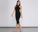 Show off those shoulders and sparkle all night long in our elegant Ingrid dress! She has a bodycon construction and features a dramatic. draped X-front neckline. a tank-style back with zip closure. and a seamed. midi-length skirt with a small front slit. Complete look with rhinestone heels and a rhinestone clutch.