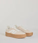 A pair of faux suede sneakers feature a round toe. rubber gum platform sole that elevates the look. a lace-up front. and a side striped design. Perfect for everyday styling.