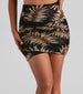 Style up this lightweight mesh mini skirt to look like you're ready for an island getaway! It features a high-rise waist. ruched side seams. a short. curve-hugging fit with a faux wrap-front design at the hem. and an all-over palm leaf print. Style with the matching crop top.