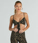 The perfect tropical crop top to enjoy the island sun on vacation! Featuring a V-neckline. adjustable spaghetti straps. and a trendy tie-front design. this top is perfect for warm weather while the cropped hem and tropical print add a touch of flirty fun! Complete the look with the matching bottoms.