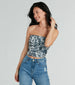 Unleash your wild side in this strapless corset top perfect for day dates to casual brunch! This eye-catching corset top is designed with a strapless neckline and flexible boning for a comfortable fit. The cropped hem and satin ribbon lace-up back add a touch of allure. while the jungle tapestry print will make you stand out from the crowd. Style with high-rise denim jeans and mules for an effortlessly chic look!