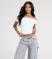 Flaunt a flirty allure in this off-the-shoulder crop top perfect for pairing with your favorite denim and impressing your crush!