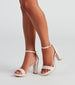 The perfect stylish PU basic heels to create all sorts of killer looks! They feature an open almond toe. wide toe strap. platform sole. block heel. closed ankle. and an adjustable ankle strap with buckle closure. Style with a chic jumpsuit for brunch.