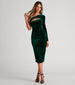 Prepare for all the jaws to drop when you're seen in the Kacie formal velvet dress at the annual holiday party! She features an elegant one-shoulder neckline. a long sleeve. a cutout bust. and a form-hugging. midi-length slit hem. The formal dress is composed of a luxuriously soft velvet fabric with a sewn-in lining and moderate stretch. Complete your dressy look in glitzy heels and a clutch.