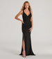 Step out in showstopping shimmer in the Kat formal glitter column dress at prom or black-tie parties! It features a plunge V-neckline. a padded bust for support. and wide shoulder straps that create the lace-up back design for a flawless look. The side ruched seams accentuate your curves along the fitted column silhouette. while the side slit offers a peak at your shoes along the floor-length hem.