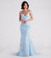 You'll be the main event in the Katy lace ball gown at formal dances. cotillions. and as the birthday princess at quinceaneras! She features a sleeveless v-neckline. padded cups. spaghetti straps with back hook-eye closures. a strappy open back with hook-eye closures. and flexible boning inserts. Her form-hugging. mermaid silhouette leads to a trendy high-low hem with a bonded edge and is perfect for showing off your heels of the night! The formal gown is composed of a lace embroidered mesh fabric with colored rhinestones and voluminous tulle and stretchy knit lining. Style with jewelry and lace-up heels to complete the look!