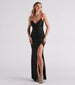 To make a grand entrance. all you need to do is wear the Kensie formal dress! She showcases style and grace with a hint of sultry in her sleeveless. surplice V-neck atop a form-fitting silhouette with a front slit. The formal dress is composed of a sleek knit fabric with moderate stretch. Complete the look in rhinestone heels for a glam touch.