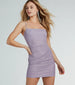 This glitter crepe mini dress is your key to sparkle all night long! The dress features a sleeveless square neckline with spaghetti straps. and a side pleated seam to give you an hourglass appearance along the bodycon silhouette. Complete the look with a chic choker and heels.