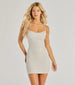 Spark up the scene in the gorgeously chic Kimber formal mini dress crafted with lined mesh fabric. tonal faux pearls. and tonal rhinestone embellishments in a diamond-shaped pattern. It features a sleeveless cowl neckline. adjustable spaghetti straps for a customized fit. and a mini-length bodycon silhouette.