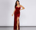 Make major stylish and bold moves in our chic Kirsten velvet formal dress. She features a sleeveless bodice. adjustable spaghetti straps. a wrap front V neckline with ruched detailing. a square back. and a floor sweeping silhouette with a thigh high front slit. The velvet fabric offers a form hugging fit and moderate stretch.