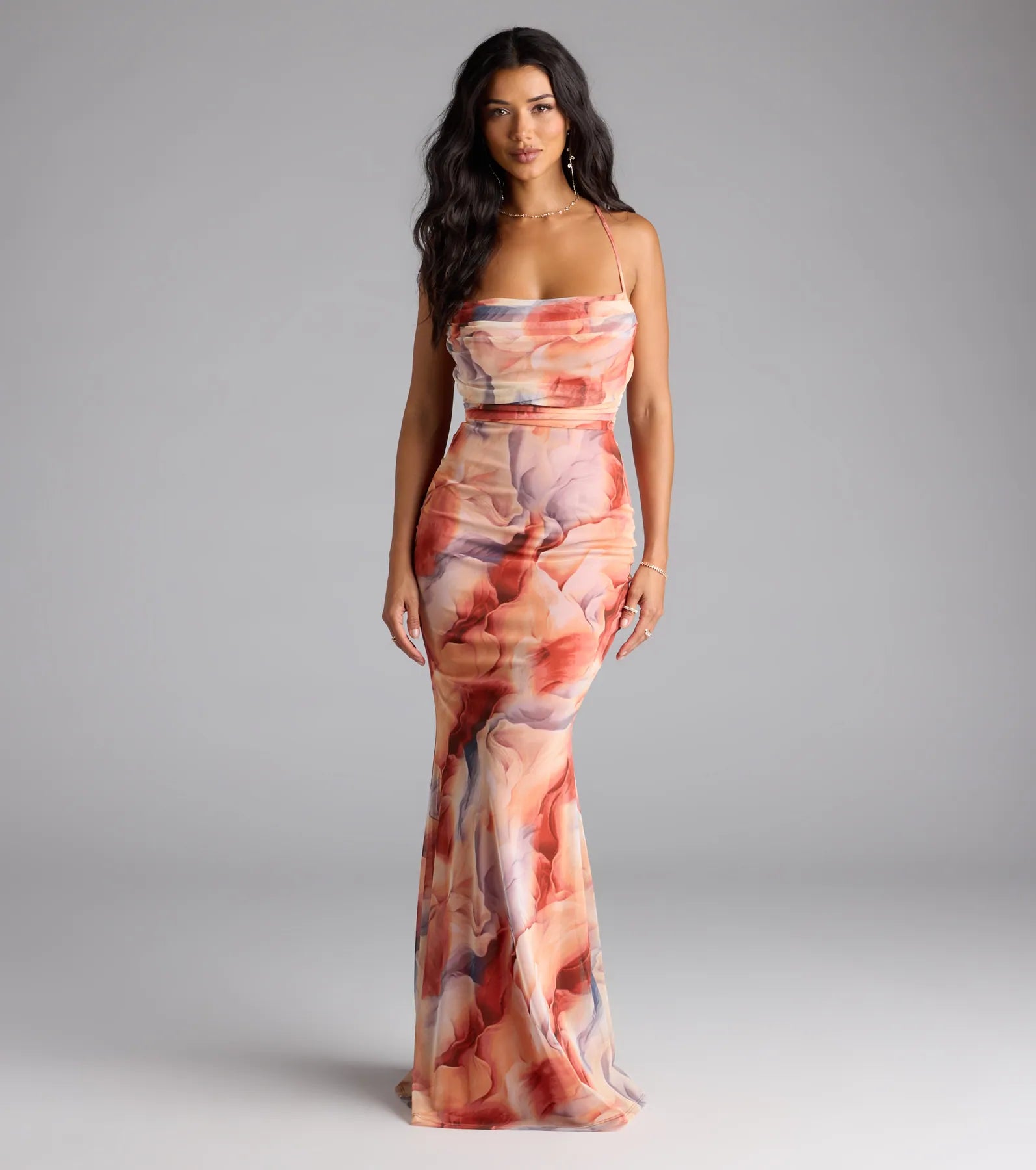 Korey Lace-Up Mermaid Abstract Formal Dress