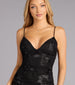 Romantic and sculpted. the Korrie floral soutache mini dress features a plunging V-neckline. curve-tracing bodycon fit. and an open back with a delicate strap detail. Equal parts flirty and elegant. it's made for nights that deserve to be remembered.