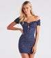 Let your love for floral bloom in this rib knit mini dress perfect for a visit to the flower fields! It features a ruffle trim sweetheart neckline and puff short sleeves. a flirty bust lace-up. a bodycon silhouette. and a mini-length hem. Complete the look in cute flat sandals and earrings.