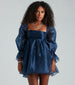 Every step will feel like strutting down the runway in the Lacinda party dress! She features adorable sheer peasant long sleeves. a square neckline with a padded bust. and a flirtatious A-line silhouette and short-length hem. The party dress is crafted from a sleek organza woven fabric with a sheen effect and a chiffon lining. Complete your look for HOCO or a formal party with a glam layered necklace for the perfect statement piece!