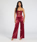From date nights to late nights. this satin strapless jumpsuit gives effortless glamour as it flaunts a cutout bodice and flattering wide-leg silhouette.