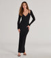 Nail that layered look in a ribbed knit dress featuring a plunging square neckline. a bralette inset with lace trim. fitted long sleeves. and a maxi-length hem with a back slit accent. Complete the look with trendy ankle booties for the ultimate vibe.