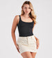Simply the best basic bodysuit for all of your styling needs! It features a sleeveless square neckline. tank-style straps. a form-hugging fit. and a thong bottom with dual snap-button closures. The bodysuit is composed of a buttery soft. double-lined knit fabric with a moderate stretch. Complete the look in an oversized blazer. jeans. and heels for a day and night outfit!