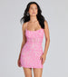 The Leyla sequin mini dress is crafted with gorgeous iridescent sequin embroidery on the partially lined mesh fabric. It features spaghetti straps leading to an open back with a lace-up strappy design for a customized fit. a sheer waist insert with flexible boning to provide structure. and a mini-length bodycon silhouette. Style with metallic heels for prom or a formal party!