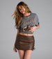 This faux leather skirt gives life to the party vibes! It has lace-up sides that demand attention. a high-rise waist. and a flattering form-hugging fit that shows off your figure.