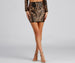 You'll be the life of the party in this glitzy embroidered mini skirt! It features a high waist and a short. form-hugging fit. The sheer mesh fabric includes a knit lining and all-over sequin embroidery in a chic geometric pattern. Style this skirt with the matching crop top.