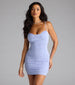 Create an iconic party look with this gorg rhinestone and pearl embellished mini dress! It features a sleeveless sweetheart neckline with a cowl draped overlay. a built-in padded bust. adjustable spaghetti straps for a customized fit. a mini-length hem. side and back ruching. a bodycon silhouette. and all-over mini rhinestone and faux pearl embellishments for a stunning glam vibe. The sheer mesh fabric includes a full knit lining. Style this mini-length dress for your next night out with rhinestone statement earrings and strappy stilettos.