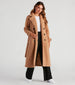 Lock down a chic look with a trench coat that brings the drama to your look! The trench features a collared neckline. long sleeves with an adjustable buckle cuff. a double-breasted button closure. a tie waist belt with loops. hidden side pockets. and a below-the-knee length. The trench coat is composed of faux sherpa knit fabric that offers a relaxed fit with minimal stretch. Complete the look with a ribbed knit dress and thigh-high boots.