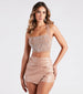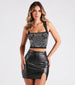 Level up your 'fit looking so glam with this rhinestone and pearl embellished top! It features a sleeveless square neckline. tank shoulder straps. a closed back. all-over rhinestone embellishments a stylish shimmer. faux pearl beading in an intricate front design. and a fitted. cropped hem. The sheer mesh fabric offers plenty of stretch. Pair with a faux leather mini skirt and clear heels for a night out.
