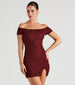 If you love to sparkle this glitter off-the-shoulder dress will have you shimmering all night! It features a bodycon silhouette. a front slit accent. and a mini-length hem. Complete the look in a choker necklace and heels for a dressy occasion!