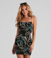 Escape to a lush paradise in this tropical mini dress perf for your next island vacay! Featuring a sleeveless. square neck. spaghetti straps that lead to the open-back with a lace-up design. a bodycon silhouette. and palm print knit-lined fabric. Complete the look in sunglasses and heels.