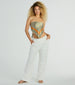 Add a luxe flair to your spring and summer 'fits with this woven loop satin scarf! Designed with a silky satin material with a chic woven loop pattern. this sleek scarf offers multiple styling options. Tie it around your neck for a fab accent. as a headwrap. or a trendy hair tie! Pair with chunky gold hoop earrings.