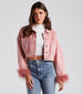 Luxe Touch Marabou Denim Crop Jacket