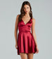 Experience the perfect blend of beauty and elegance with this Macie satin skater dress at homecoming and formal parties! Featuring a sleeveless plunge V-neckline and an open lace-up back for a customized fit. this dress will flatter your figure and add glamour to your look. Enjoy a classic skater silhouette in a short-length hem made from luxurious satin-knit fabric. Complete the look with gorgeous rhinestone jewelry to add an elegant shine!