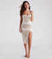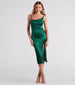 Maggy Formal Satin Slit Midi Dress