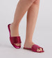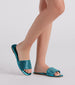 Every step is magical in these metallic flat sandals perfect for gaming up your outfit! They feature a sleek square toe. a wide strap with colored rhinestones. and a flat sole. Complete the look in trendy skinny jeans.
