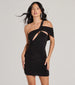 This bodycon mini dress features a sultry one-shoulder neckline and a cutout bust design. The smooth knit fabric effortlessly hugs your curves. highlighting the sleek look of this dress for clubbing with the girls.