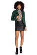 Make your next stylish move in this moto jacket! It features a flat collar with stud detailing. an asymmetrical zip front. zippered pockets and a fitted look. Pair this jacket with a basic bodysuit and stylish mini skirt for an edgy-chic look.