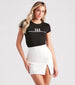 Radiate the good vibes in this eye-catching cropped graphic tee! It features a crew neckline. short sleeves. and a front script that reads. "111" and "Manifesting Everything I Want." The lightweight knit fabric offers plenty of stretch. Style with a mini skirt and clear mules and take on the day with your good energy!
