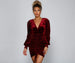 Make a stylishly chic entrance at your next party in the luxe Mariah velvet bodycon dress. She features a V-neckline. bishop sleeves with tapered smocked hems. front and back ruched detailing. an adjustable drawstring at the front hem. and a short. curve-hugging silhouette. Complete your look with strappy heels and a sleek clutch.