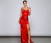 Stop everyone in their tracks in the lovely Marina mermaid dress! Embrace all the elegance and grace of this sultry sleek dress with its sleeveless cowl neckline. spaghetti straps. ruching at the waist. and its floor-length fitted silhouette with a high front slit. Complete the look with sparkly statement earrings.