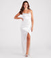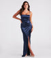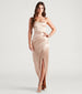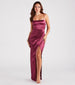 Slip into the luxe vibes of Mayra! Designed to highlight your figure. this formal satin dress delivers a chic form-hugging fit and a high slit for effortless movement.