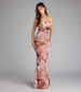 Designed to turn every entrance into a slow-motion moment. The dreamy McKenzie floral formal dress features delicate ruching. a cowl halter neckline. and a curve-loving mermaid fit!