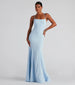 Lace up in a formal dress that brings the elegance to your event! Meadow features a sleeveless square neckline. flexible boning for structure. spaghetti straps. a lace-up back design. and a mermaid silhouette with a wide banded hem. The dress is composed of a lined crepe fabric that offers a form hugging fit with a moderate stretch. Complete look with rhinestone heels and a clutch.