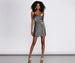 Wow in this metallic mini! She features adjustable shoulder straps. a cowl neckline. sleeveless bodice. and a mini length. a-line silhouette. Composed of a metallic knit fabric. she offers little to no stretch. Zipper not included.