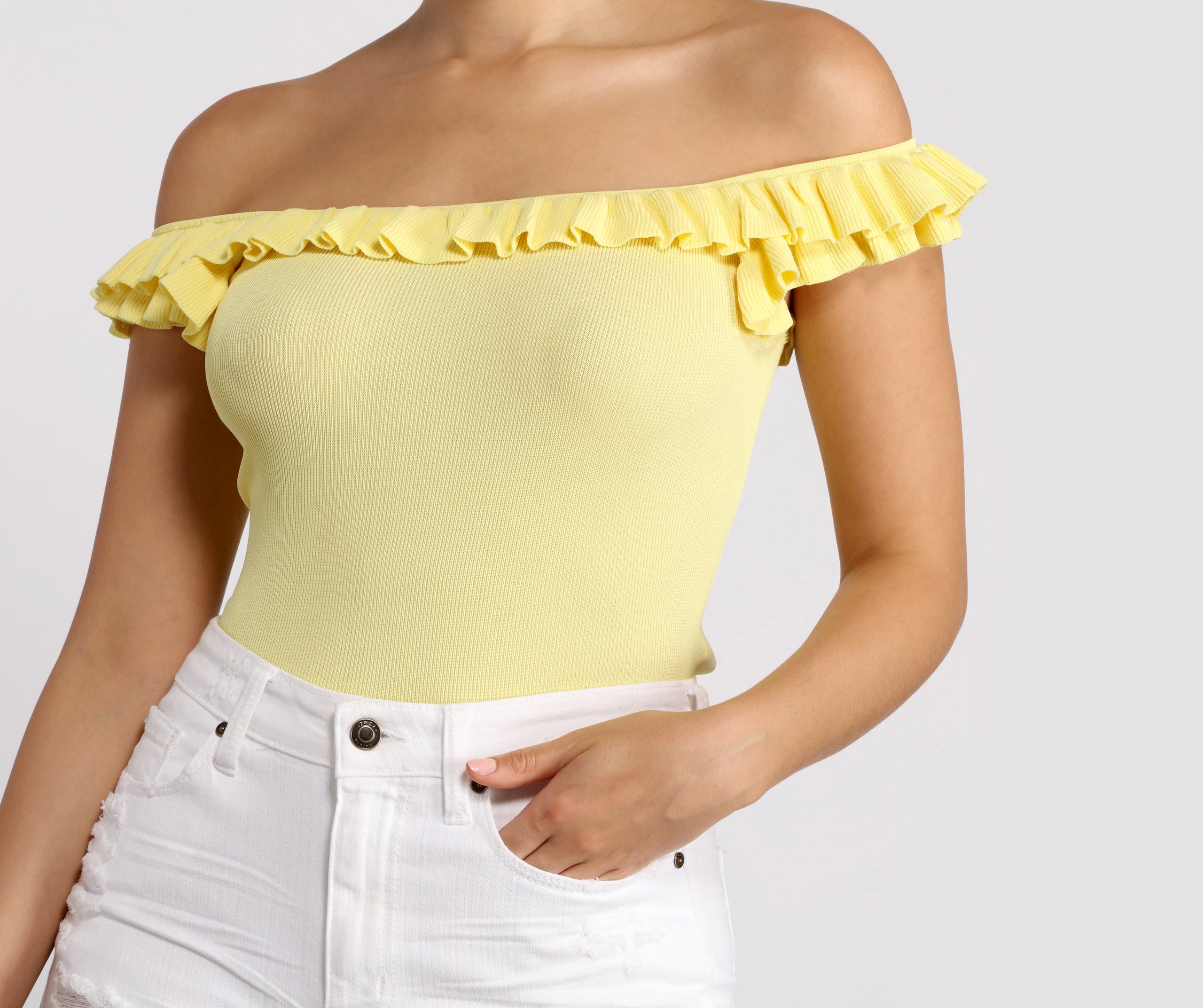 • Ruffle off the Shoulder Trim