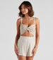 Mix up your everyday style in this flirty sweater crop top featuring a sleeveless. sweetheart neck. tank-style straps. and a twisted bodice on stretchy and soft rib-knit fabric. Complete the look in high-rise skinny jeans for a brunch.