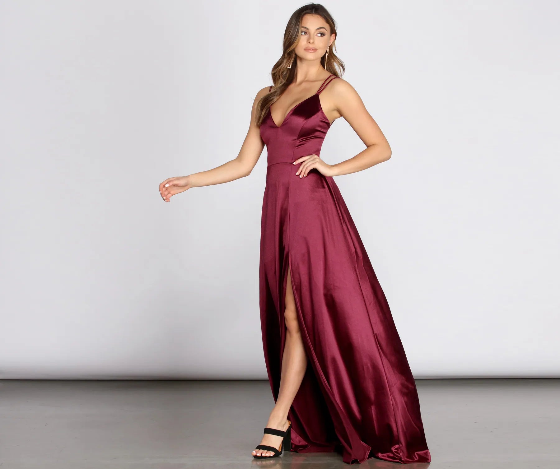 Bring the luxe as you draw all eyes on you in our daring Monique satin dress! She captivates with a bold lace up back and glam satin!Â