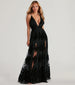 Bring immaculate sultriness in the Morgan floor-length formal dress as a striking bridesmaid. wedding. or event guest! This A-line dress stuns in a plunge V-neckline with spaghetti straps that shape the open cross-back design and dual slits for movement.