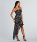 A Greek print midi dress that creates an enchanting look! Its strapless neckline and form-hugging silhouette flatter any figure. while the asymmetrical ruffle trim and midi length hem highlight every curve perfectly on printed mesh fabric. Complete the look in stiletto heels for a day date or party!