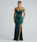 Look glamorous in the Nancy formal satin dress to make your debut at fancy holiday parties or banquets! She features an off-the-shoulder sweetheart neckline with short-sleeve cuffs. a wrap-style bust. and a flawless mermaid silhouette. high front slit. and floor-length hem. The formal dress is crafted from a smooth satin fabric with a sheen effect for the perfect shine and has a bust lining. Complete the look with a dainty rhinestone tennis bracelet and heels.