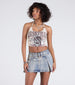 Channel that edgy country girl vibe in this graphic tank top with a snake graphic and script reading "Nashville Music City." The tie-back halter straps offer an adjustable fit. paired with a form-hugging cropped hem.